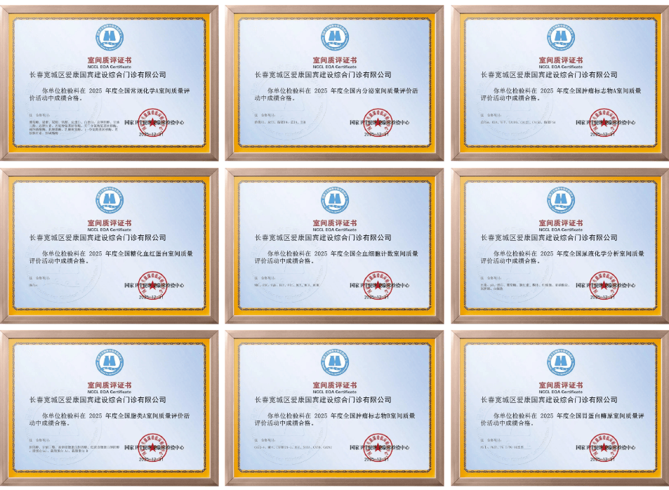 2025年,国度卫生健康委临床查验核心组织的该项评价尺度严苛、承认度高,是爱康苦守“以质取信”的价值不雅的,全方位保障体检数据精准性。斩获两威认证——成功通过国度卫生健康委临床查验核心9大类目室间质评,将来,是机构专业实力的无力佐证。