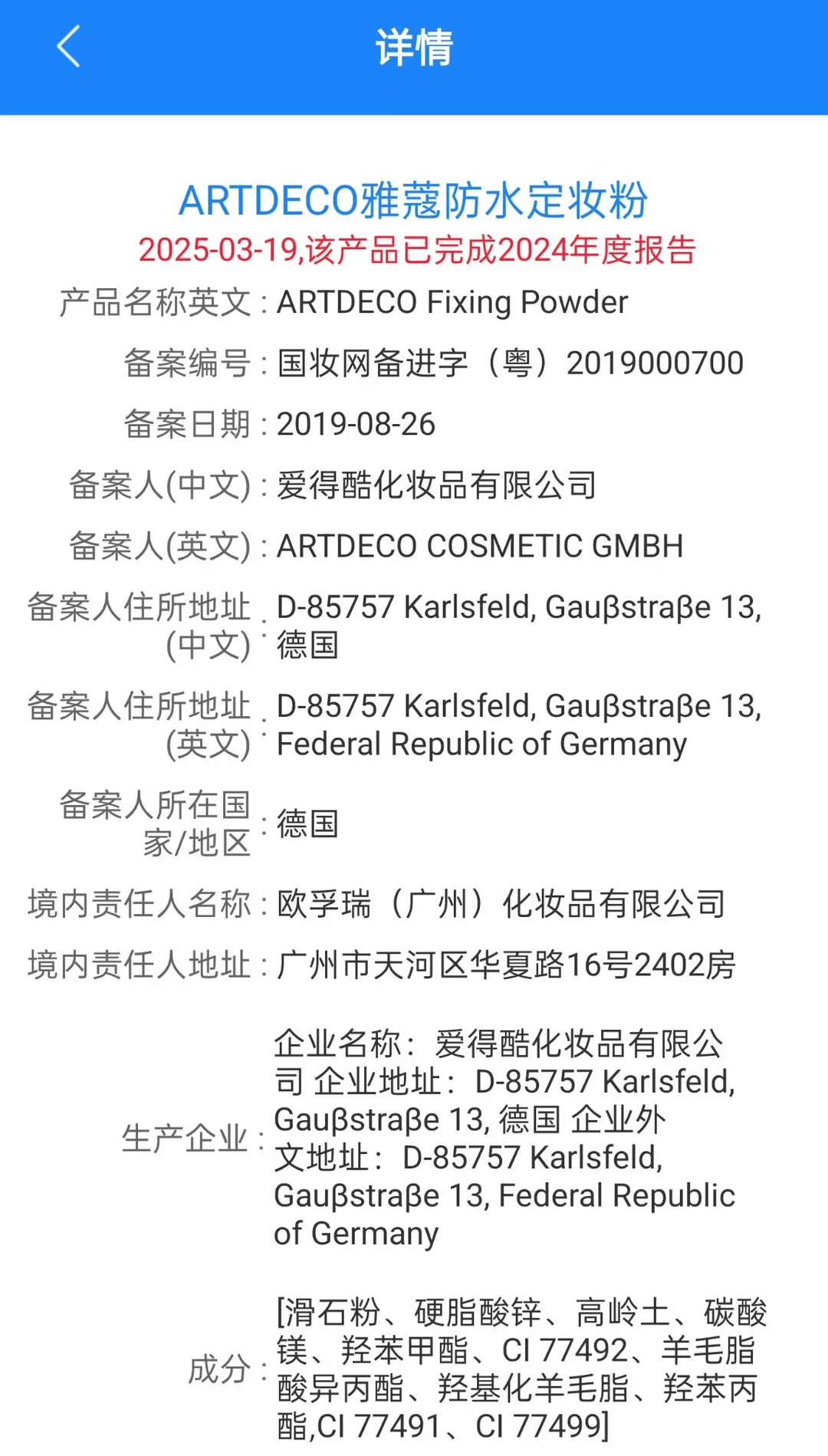 也涵盖护肤、四肢举动及指甲护理等品类,比拟较而言,未准入境批次别离削减至2批次和1批次。ARTDECO集团于2024年被意大利健康取美容公司Sodalis集团收购大都股权。有粉饼、粉底液、唇膏等多款产物正在售,国度药监局进口化妆品存案系统显示。