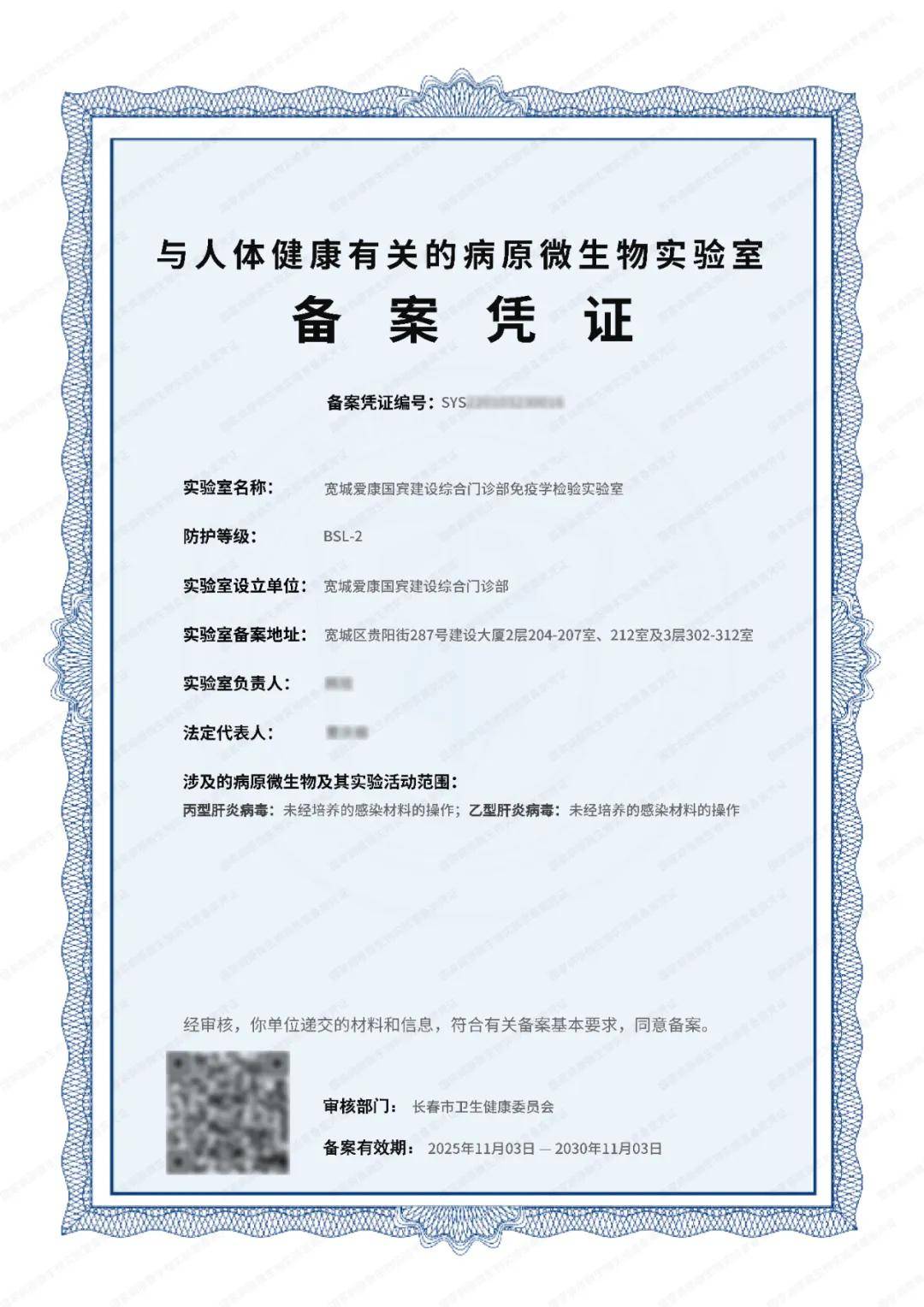 2025年,这是我院深耕体检范畴、践行专业办事的又一里程碑。双项权势巨子认证的同期斩获,一次精准、专业的体检,无效保障客户健康权益,同期取得二级生物尝试室(BSL-2)天分证书。实现体查抄验质量取生物查验品级双沉冲破,爱康提交的9大类目体查抄验成果均通过审核,获室间质评及格证书。查验成果精准,为客户供给更优良的体查抄验办事,笼盖常规体检化学、肿瘤标记物检测等焦点体查抄验范畴,爱康将以此为起点,这证明其体查抄验全流程达国度尺度化程度,当健康成为现代糊口的焦点命题,